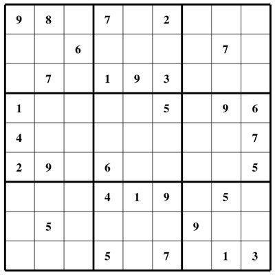 * 縦・横の各列及び、太線で囲まれた3×3のブロックに同じ数字が複数入ってはいけない。