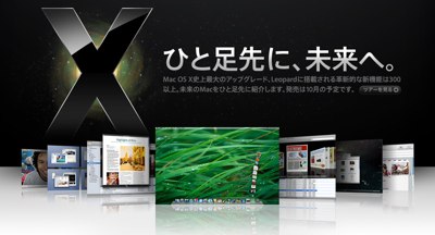 「Mac OS X 10.5」であるLeopardでは、Macデスクトップスクリーンのユーザーインターフェースが新たに更新され、「Time Machine」や「Boot Camp」の製品版などの新機能も搭載される予定である。現在Amazon.comにおいて、シングルライセンスで129ドル、またはファミリーライセンスで199ドルで、予約注文が可能である。