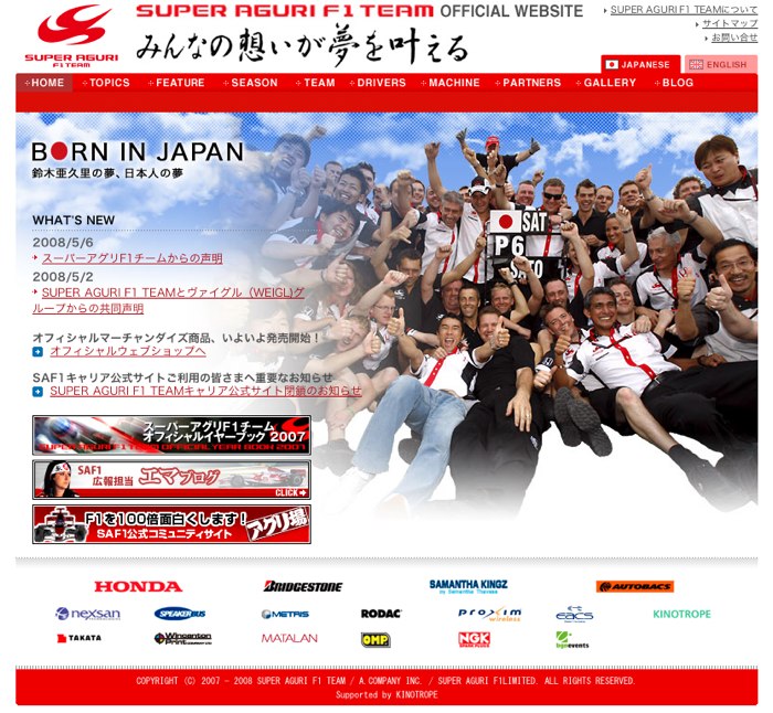 via: SUPER AGURI F1 TEAM | 2008年トピックス