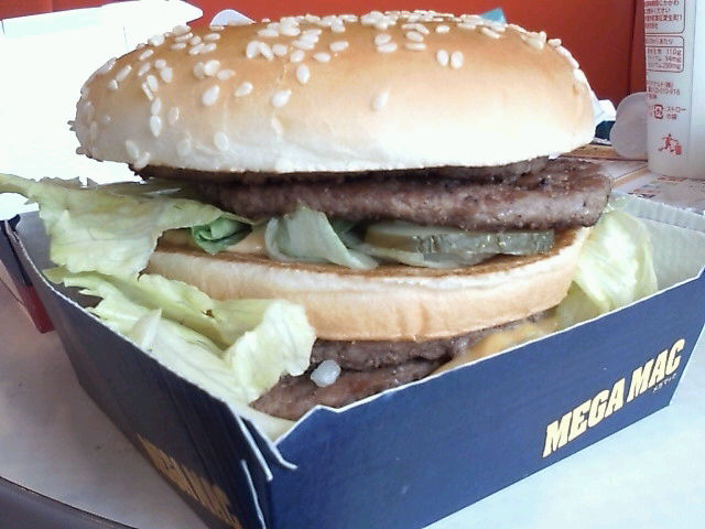 特にハンバーガーが好きな訳ではないのですが、実際にメガマックを見たことがなかったので。