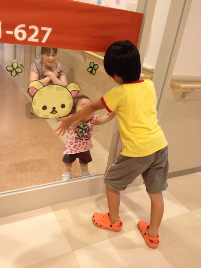 他の入院しているこどもの中にはいくつものチューブをつけられ一日中泣いている子や、両手を包帯でグルグル巻きにされていてオモチャでも遊べない子、夜、親が帰ってしまっておウチに帰りたいよーと泣く小学生など、たくさんのこどもがいます。