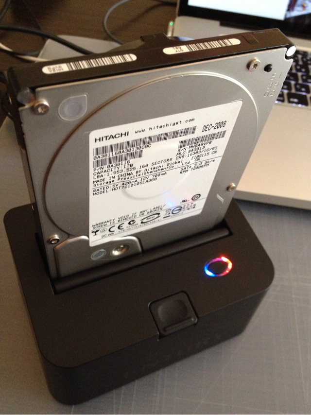 先日、外付けHDDが昇天なさったので、ケースから中身を取り出して「裸族のお立ち台」でつないで見たら、あっさり認識出来ました。