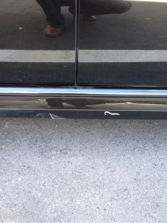 当たった衝撃とは裏腹に傷は擦り傷程度でした。しかもドア部分ではなく、ドア下のステップ部分なのでたいして目立たず。バイクの彼は出勤途中だったようですが、いちおう警察に連絡し、事故処理。