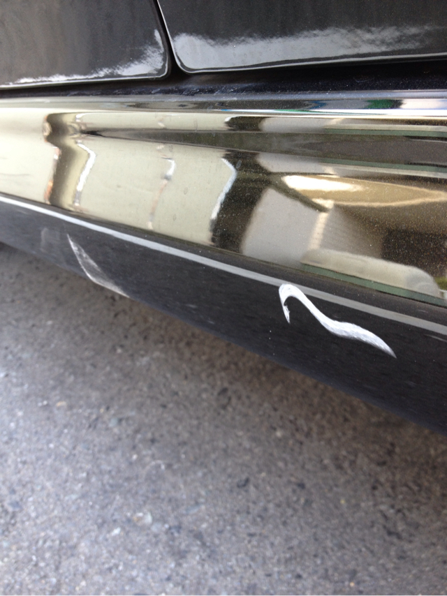 バイクの前を走っていた車が右折レーンに入ろうとしたので、バイクがスロットルを上げた瞬間に前の車が左へ戻ってきたため、バイクはハンドルを左に切ったところスリップし、路面を滑りながら僕の車に衝突した、という経緯でした。お互い「運が悪かった」わけなので、バイクの彼を責めるつもりはまったく無いのですが、彼は恐縮しきりでした。