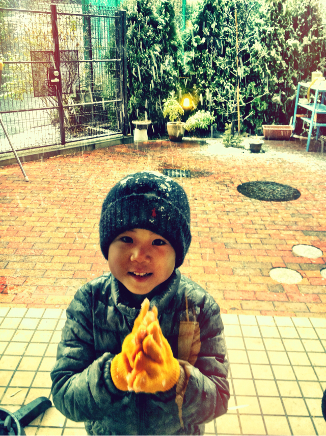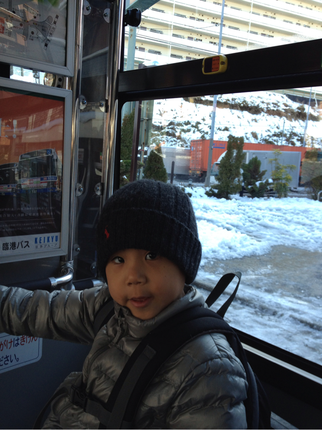 川崎に程近い横浜市ですが、安全策でバス登園にした。主要な道路は日が当たる部分はすでに雪解けしてますが、日陰に入るとガチガチに凍っていました。