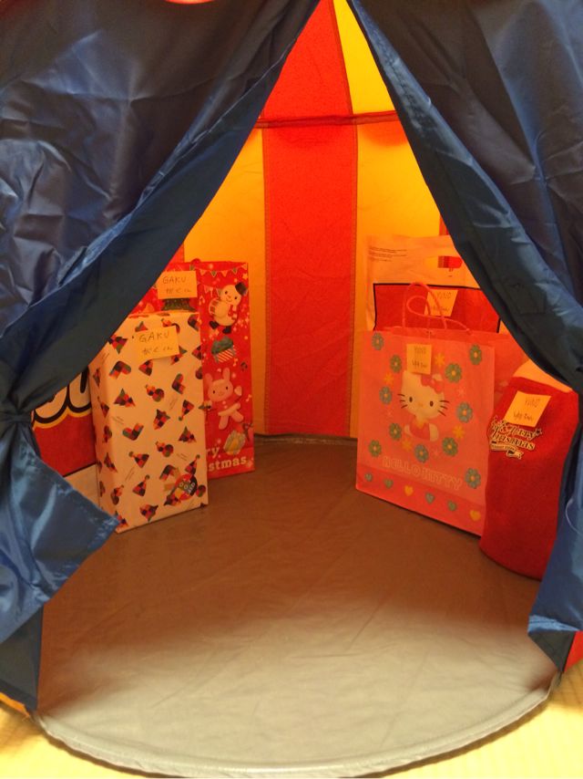 クリスマスツリーは部屋の外、庭にあるのでそれもちょっとどうかと。