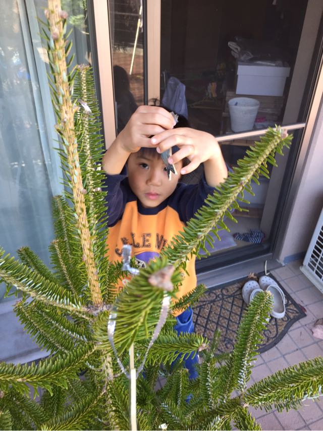 ツリーを立てるスタンドは持っていたので、すぐに設置。