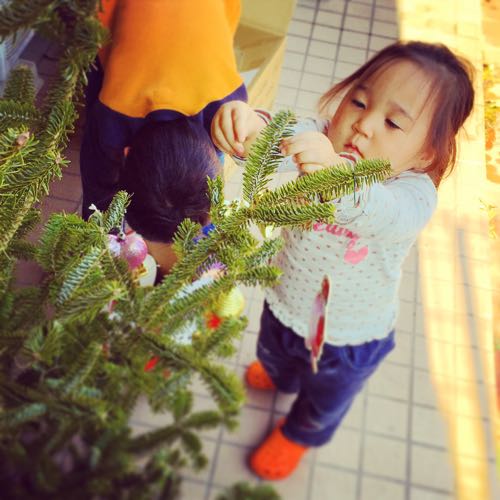 ツリーの頂点に星を飾りたいガクさん。まだ身長が足りませぬ