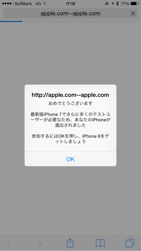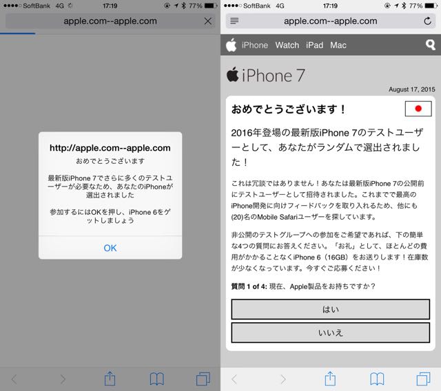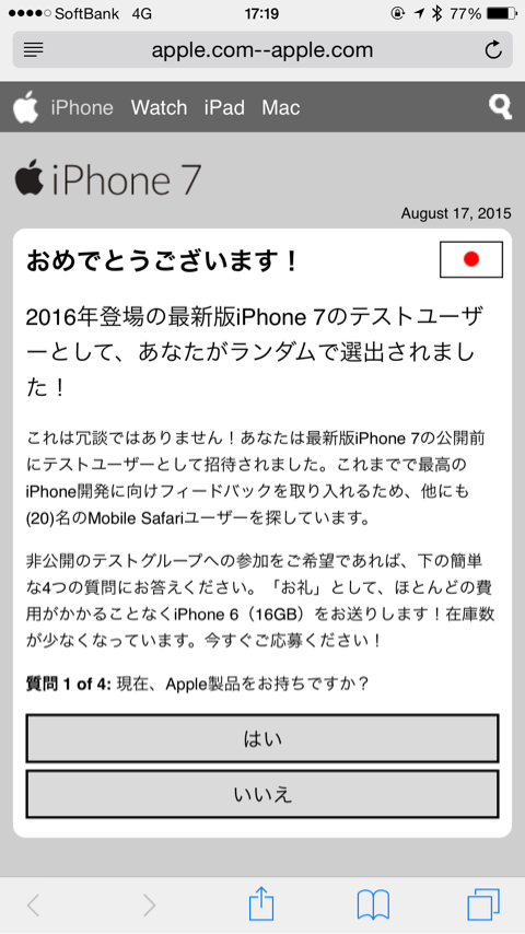 『iPhone7のテストユーザーに選ばれました詐欺』が私のところにも来た! – techjo