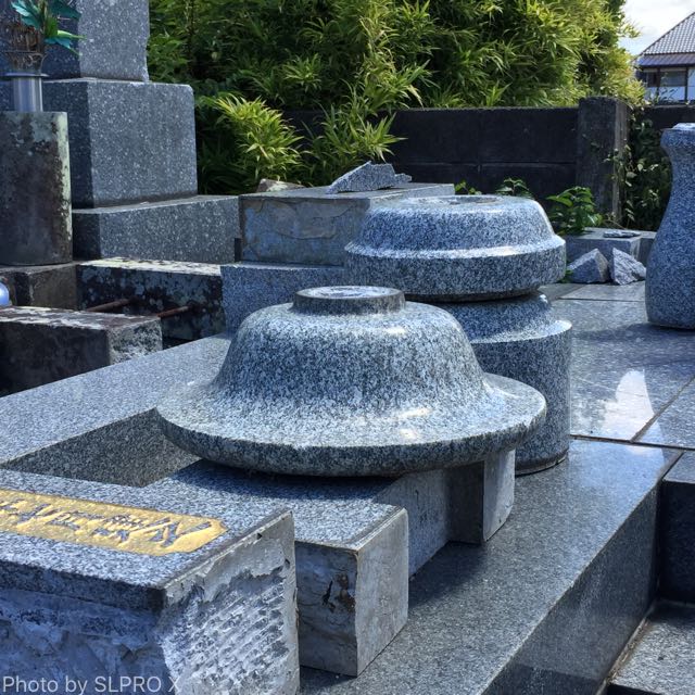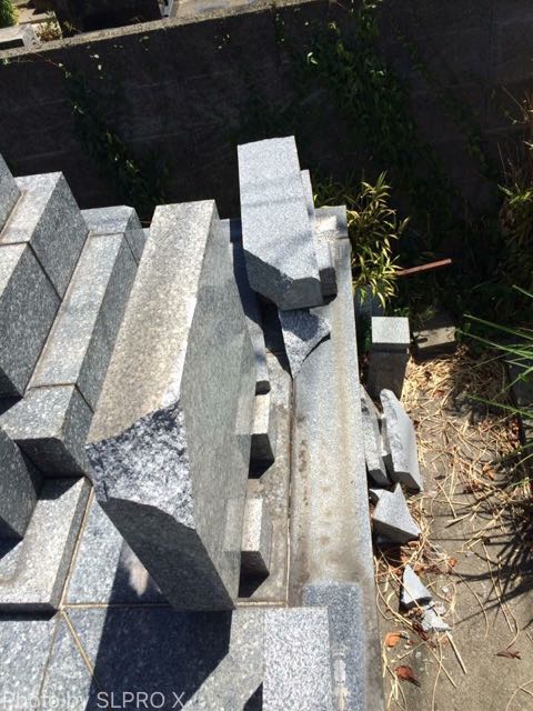 お墓まいり。ここにも地震の影響が。なぎ倒された墓石。
