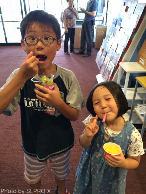 焼酎アイスを手にニコニコ顔のガクさん。大丈夫、君は大人になっても酒飲めないよきっと・・・(´༎ຶོρ༎ຶོ`)