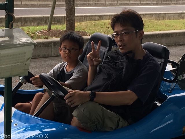 ゴーカートに乗ってみた。ガクさんのビビリ具合が情けない・・・もっとアクセル踏め!と言っても恐る恐る・・・。