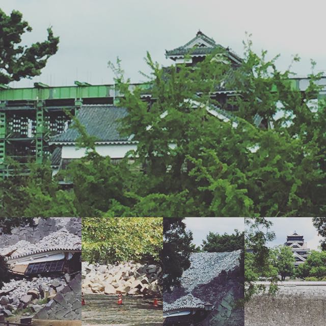 観光客の賑わいはあるが、やはりお城の痛々しさが残る。