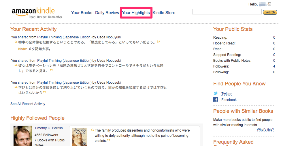 (3)サインイン直後の画面の一番上にある「Your Highlights」をクリック