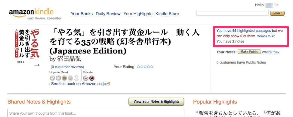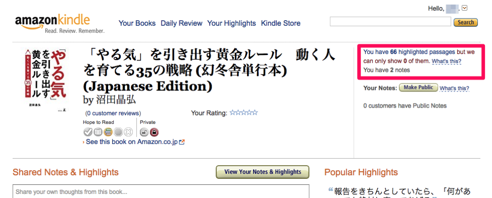 (7)しかし、ここで書名をクリックしても、自分のハイライト箇所が出てこない・・・