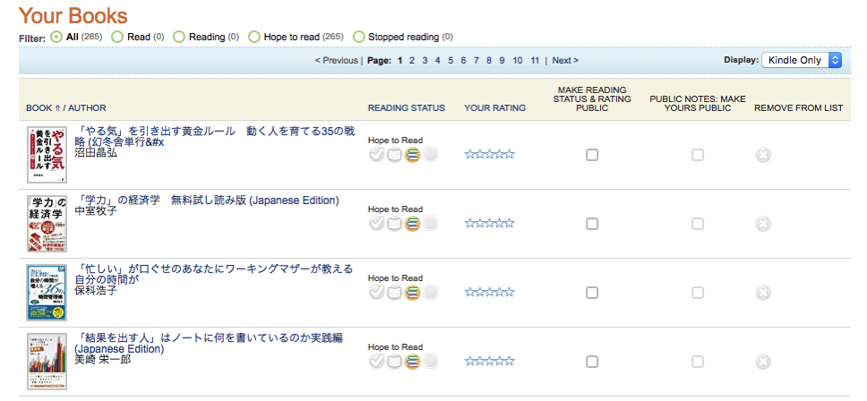 (6)メニューの「Your Books」をクリックすると自分のkindle本一覧が出る