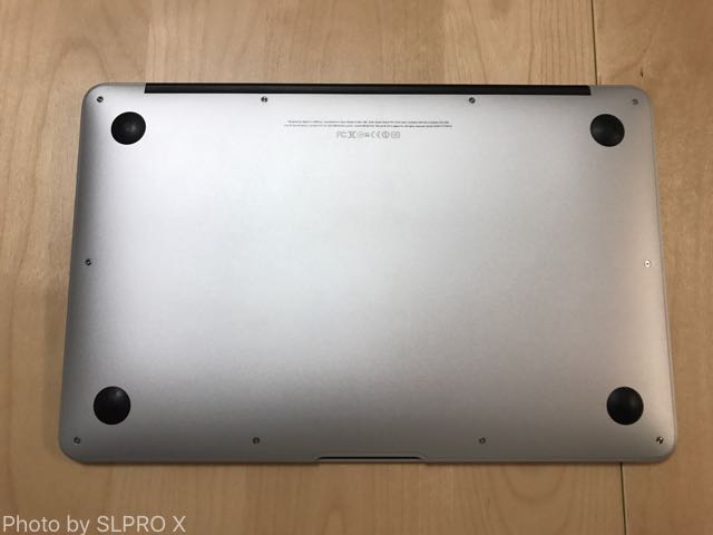 MacBook Airを裏返します。
