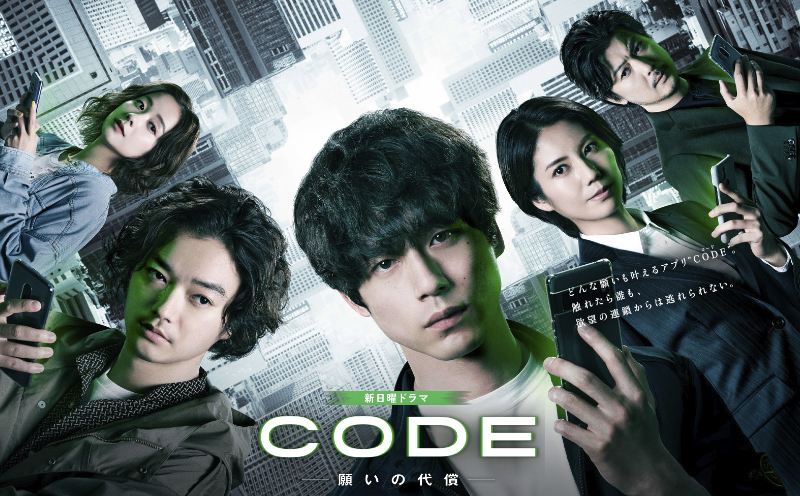 台湾で話題を呼んだ「浮士鄹遊戲(英題:CODE)」を原作に、主演・坂口健太郎、共演・染谷将太で描くノンストップクライムサスペンス。不審な事故に巻き込まれ婚約者を亡くした刑事・二宮(坂口)の元に、どんな願いもかなえるという謎のアプリ「CODE」が届く。二宮はこのアプリを使って、婚約者の死の真相を追う。