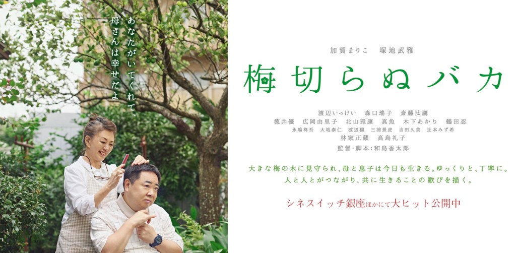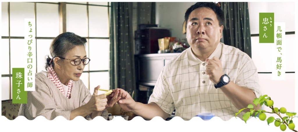道路にはみ出た梅の木を、忠さんと里村親子が次々と少しだけ避けて通るシーン。